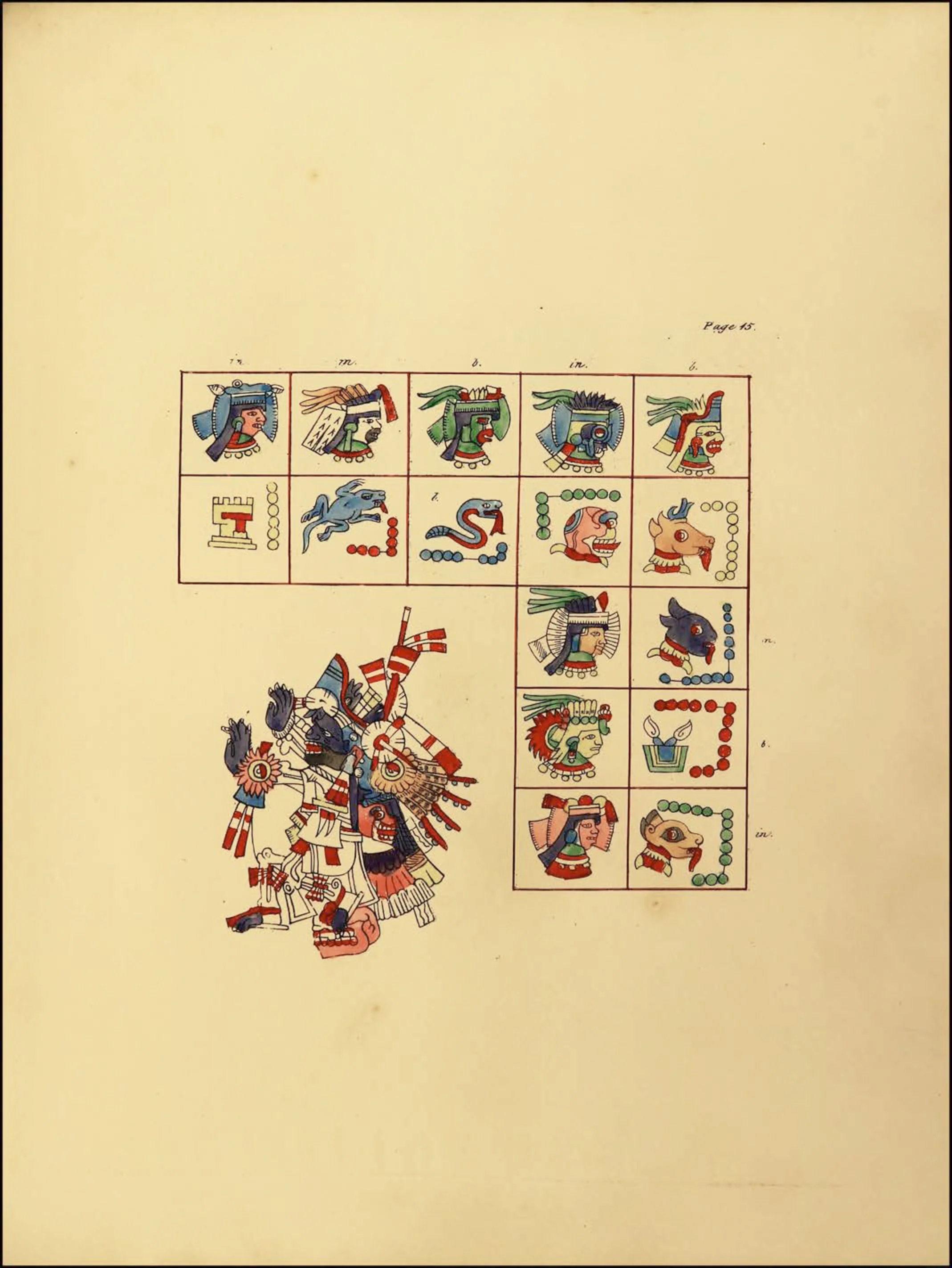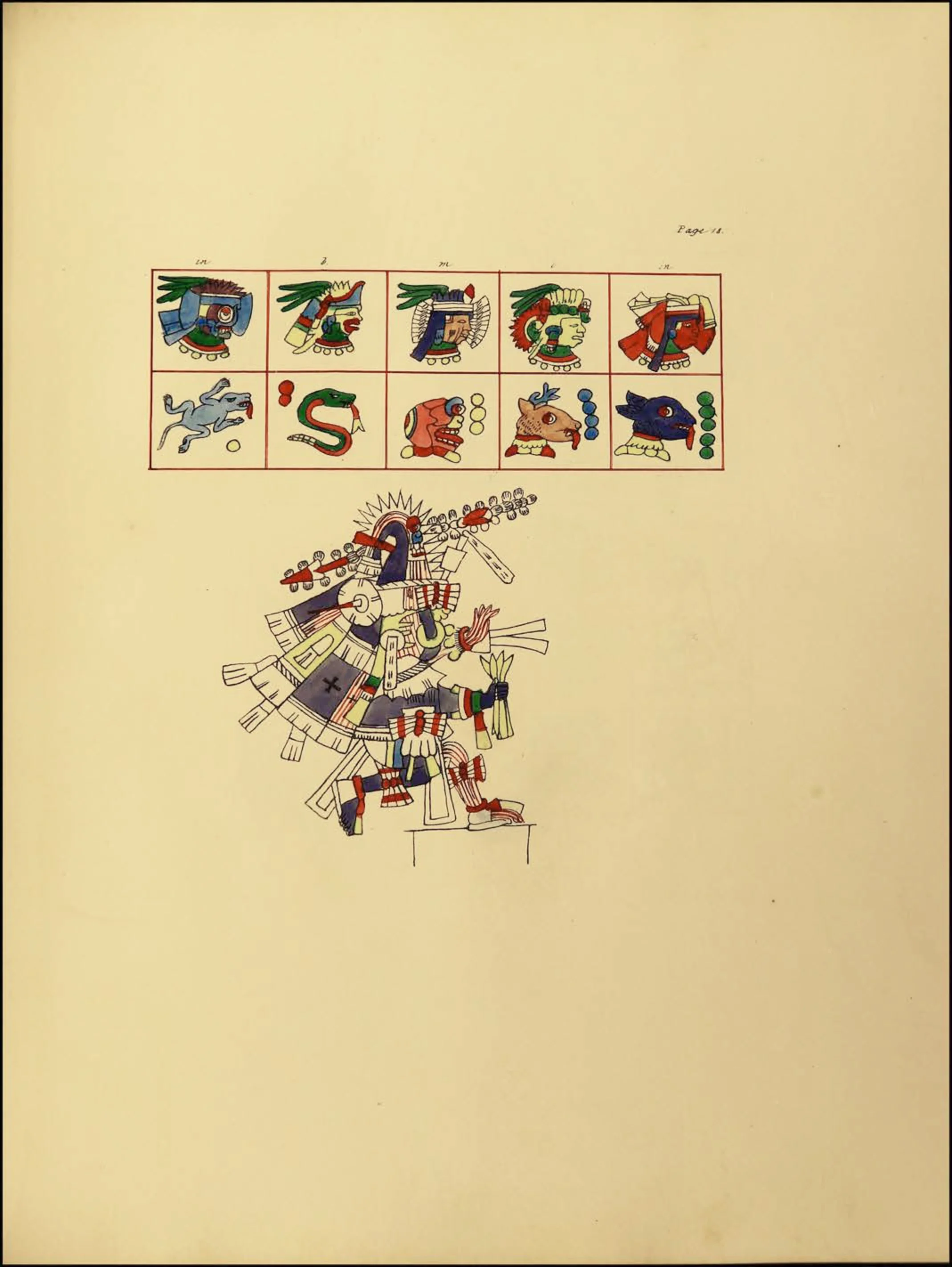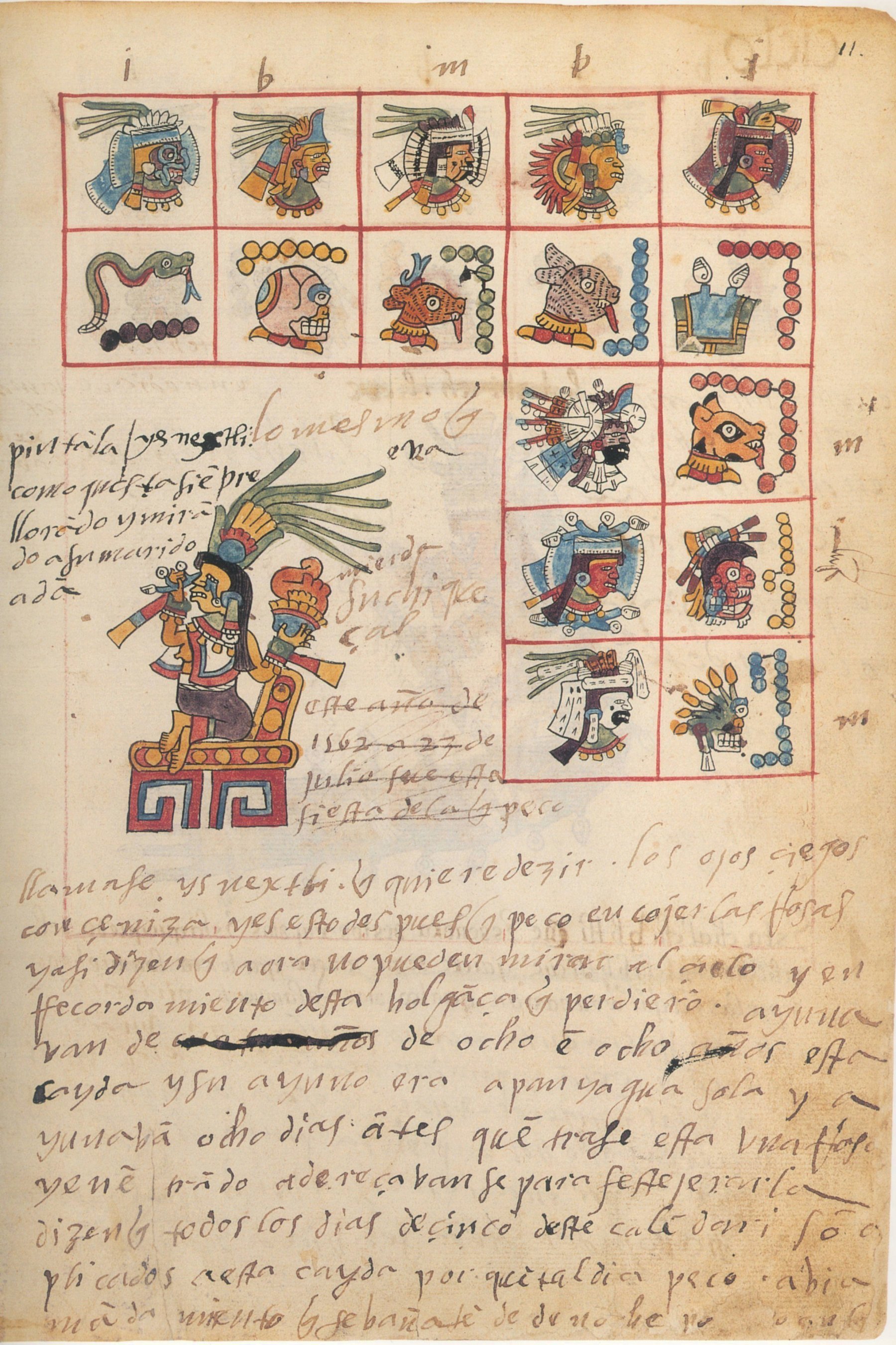 La segunda sección, que abarca las páginas 8 a 24, es un tonalamatl, que describe el calendario tonalpohualli de 260 días.