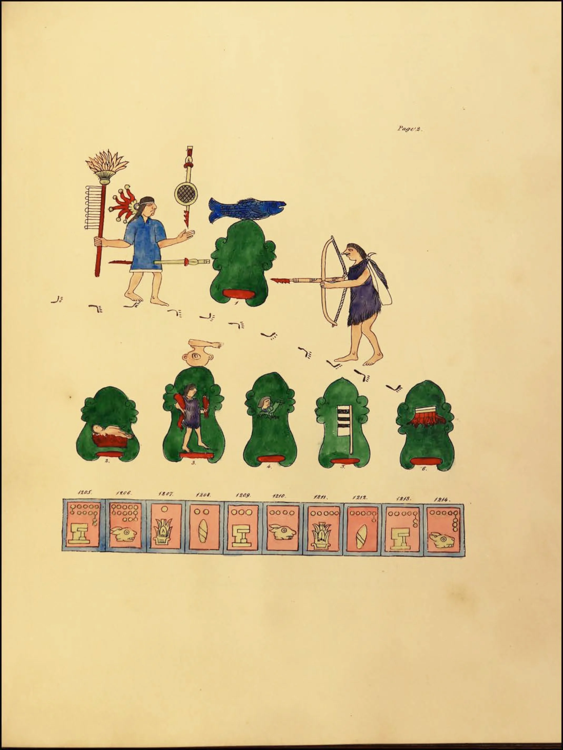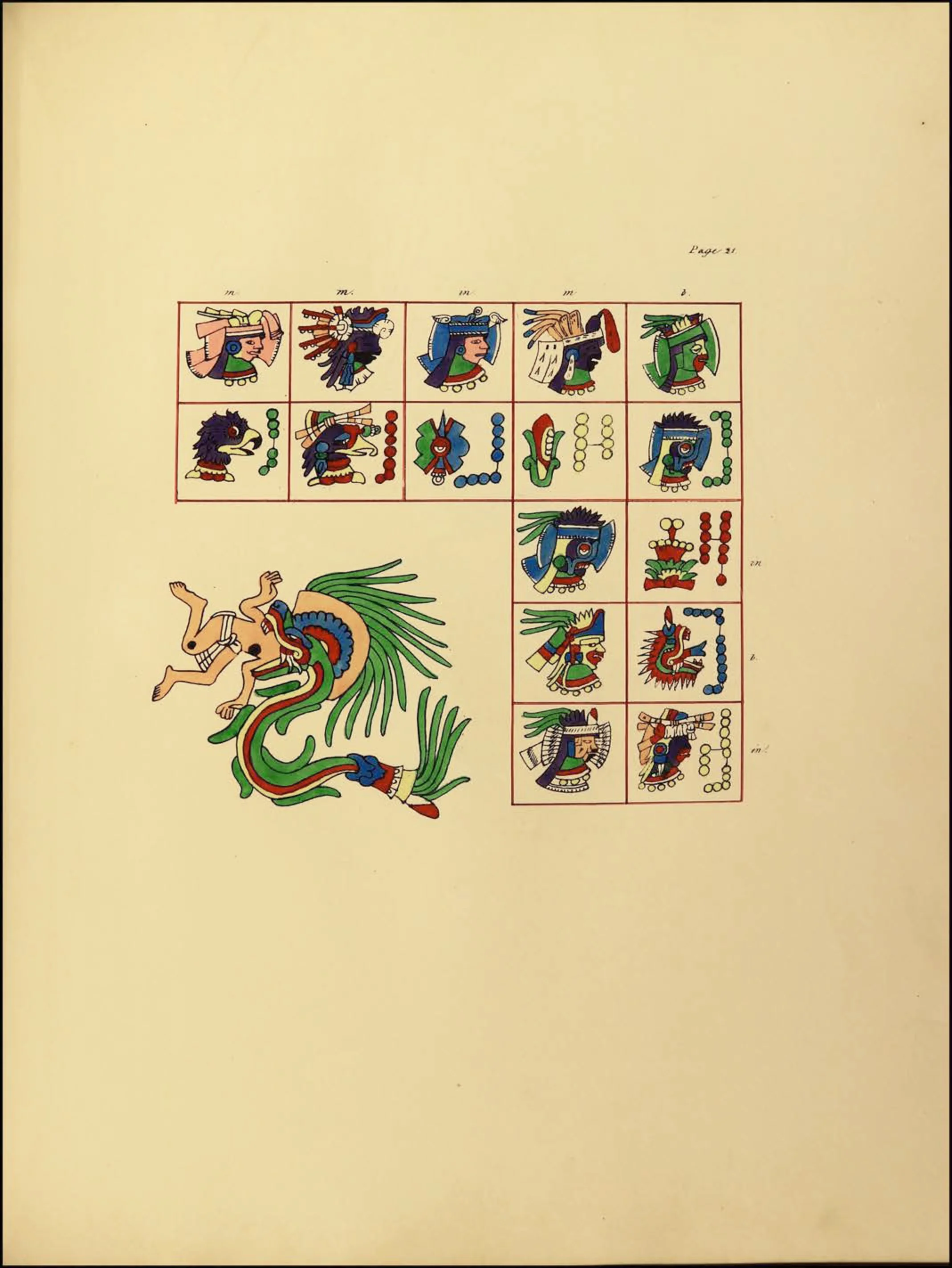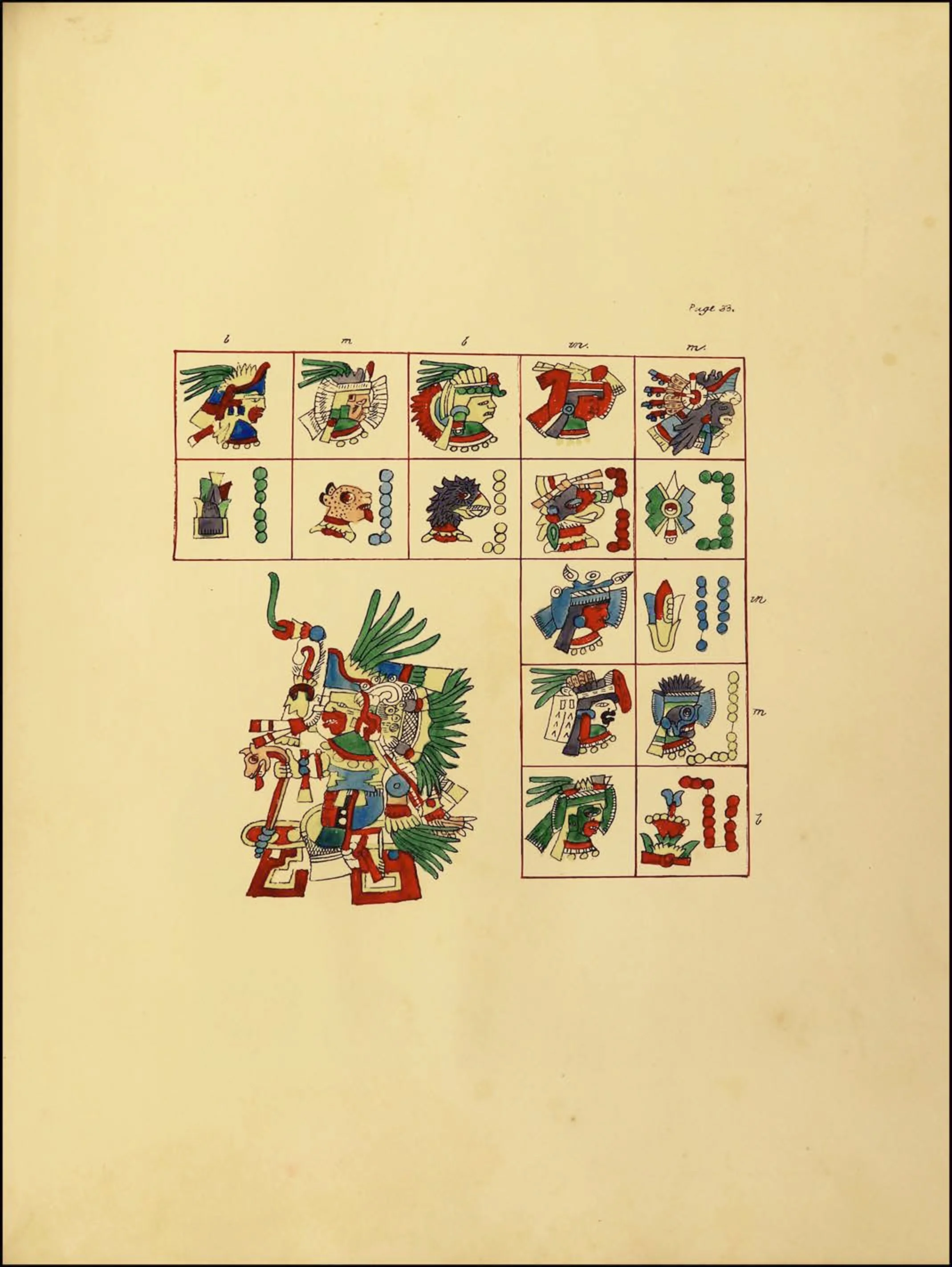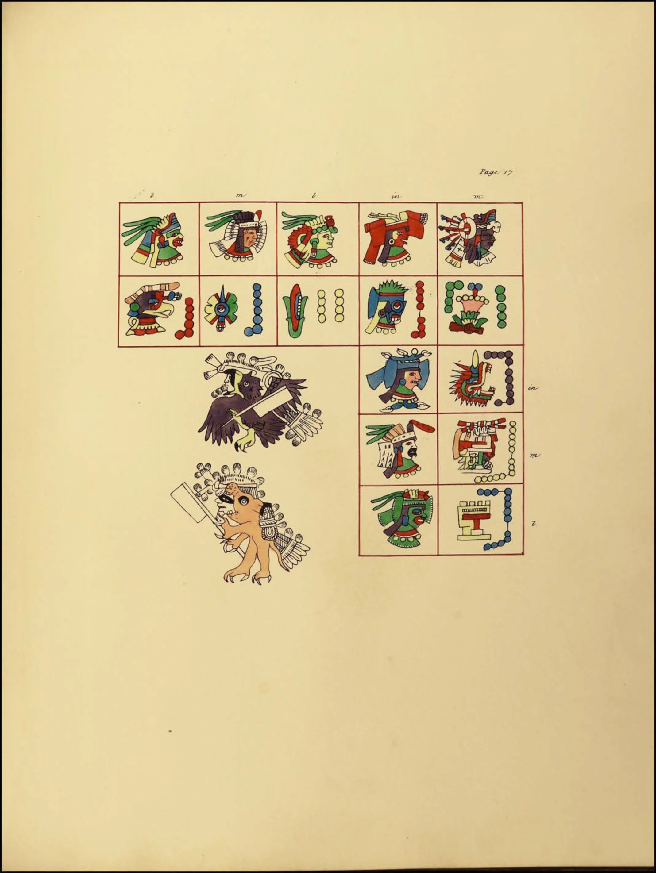 La segunda sección, que abarca las páginas 8 a 24, es un tonalamatl, que describe el calendario tonalpohualli de 260 días.